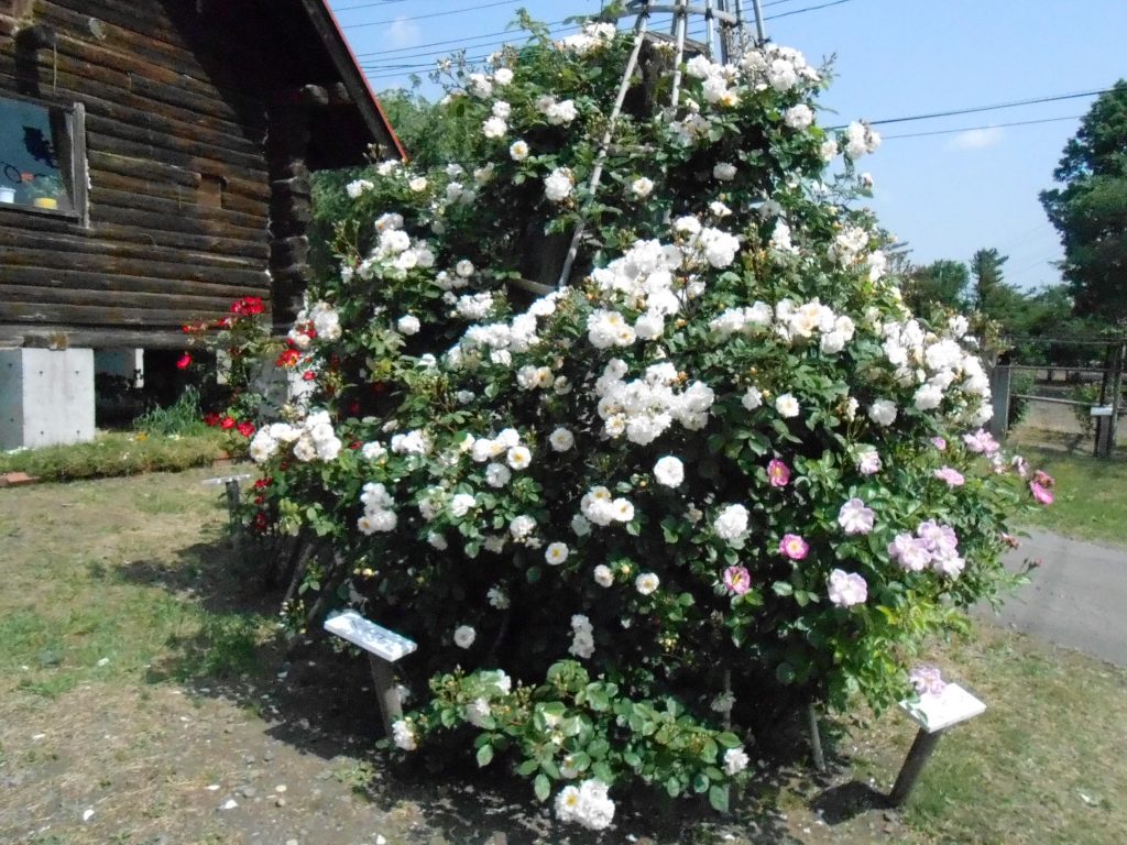 蔵王チーズのバラはどんどん咲いています。 好天が続き、今は「全体の5~6割くらい」の種類が咲いていて、見頃の時期になってきました。
